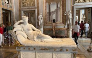 E così hanno ammirato con me grandi capolavori della Galleria Borghese, di artisti come Bernini che scolpiva i personaggi cogliendoli nella loro mobilità o Canova che li coglieva nella loro bellezza classica, o Tiziano e Caravaggio…