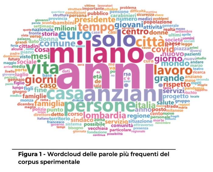 La frequenza delle parole utilizzate negli articoli esaminati (vedi workcloud di seguito, tratto dal report della Ricerca) ha poi consentito sia di associare gli articoli a vari argomenti, sia di valutare il tono positivo, neutro o negativo di ogni testo.