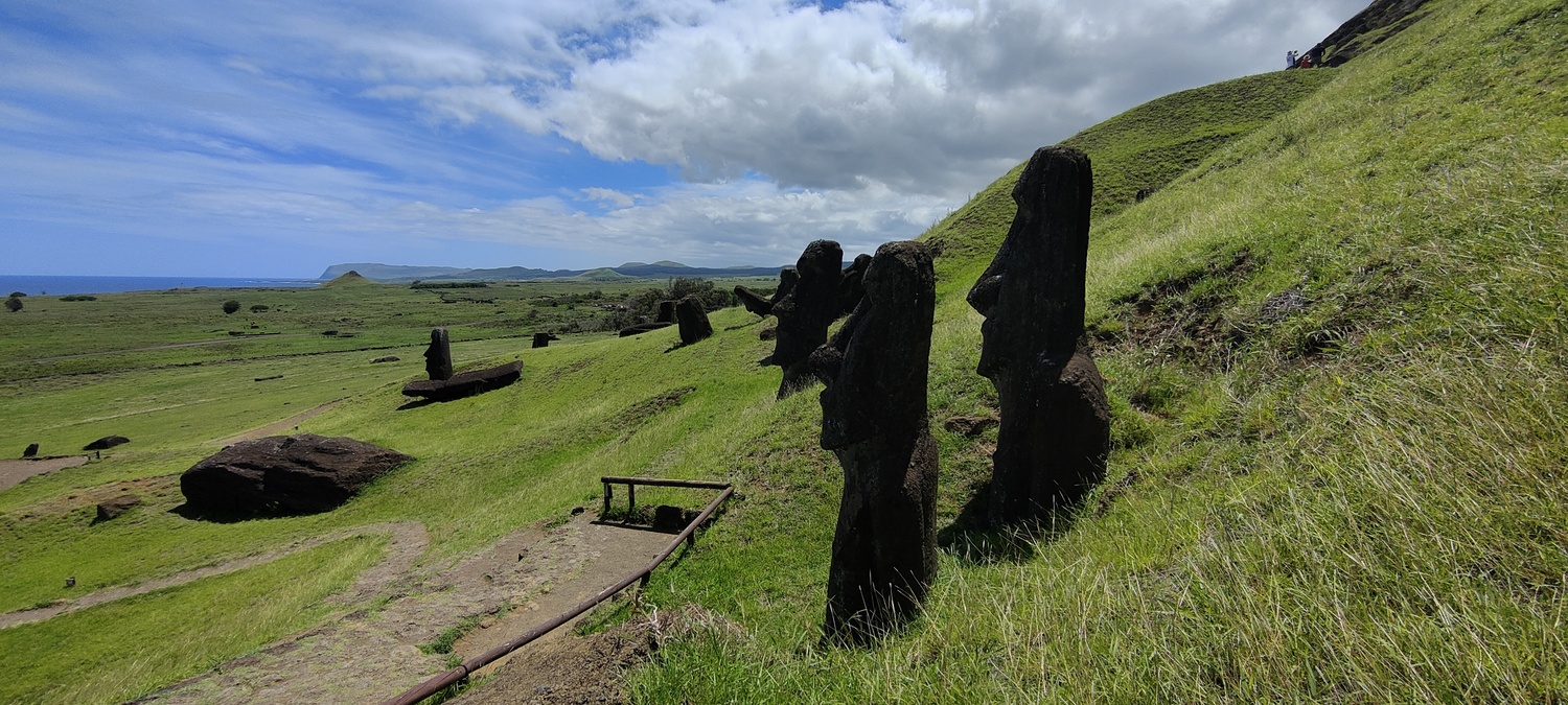 Moai è il nome delle circa 900 iconiche statue dell’isola. Costituite da lava vulcanica, hanno un’altezza media di 4,5 metri e un peso di circa di 5 tonnellate ciascuna. Le loro dimensioni, considerando la tecnologia a disposizione all’epoca, fanno supporre grandi sforzi e sfide logistiche per costruirle e trasportarle. Scolpite tra il 1250 e il 1500, le sculture Moai rappresentano lo spirito dei loro antenati e di personaggi importanti per la loro società.